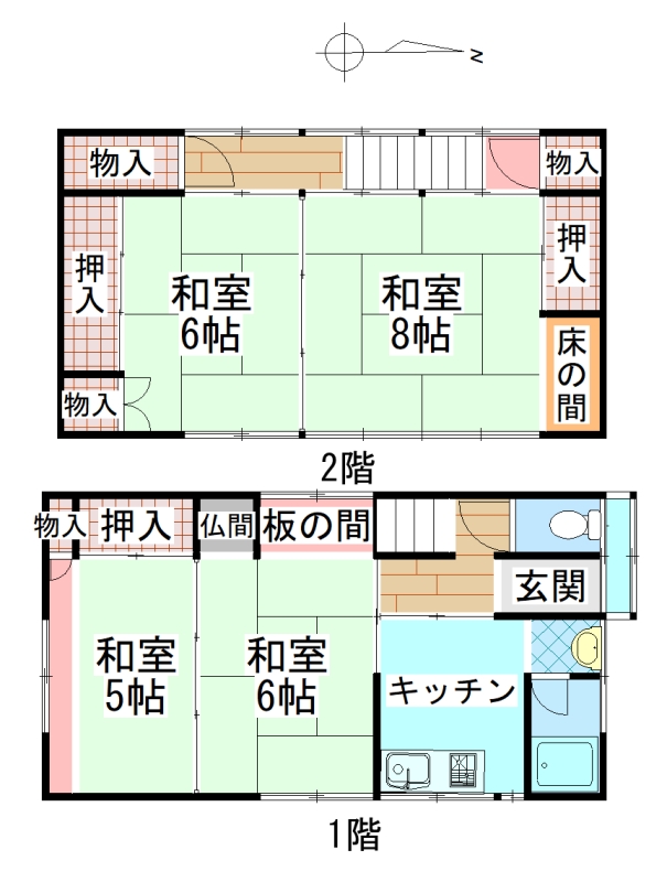 和室 6畳 1階 和室 5畳 1階 和室 6畳 2階 和室 8畳 2階 K 3.8畳 1階 |